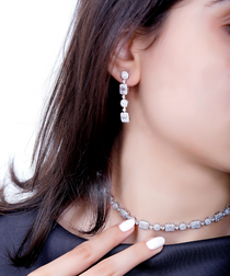 When it comes to standout statement pieces, chokers are back in the spotlight. The Baguette Uncut Swarovski & CZ Diamond Adjustable Choker Necklace & Earring Set is the perfect blend of luxury and fine craftsmanship. Designed under the Bansri Fine Collection, this set is meticulously created with micro-detailed pave CZ diamond stone settings, offering unmatched sparkle and sophistication.