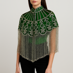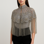 This jeweled crystal cape is absolutely stunning! The silver shines beautifully, and the crystal embellishments add just the right amount of sparkle. I wore it to a gala, and I felt like a princess. Highly recommend!