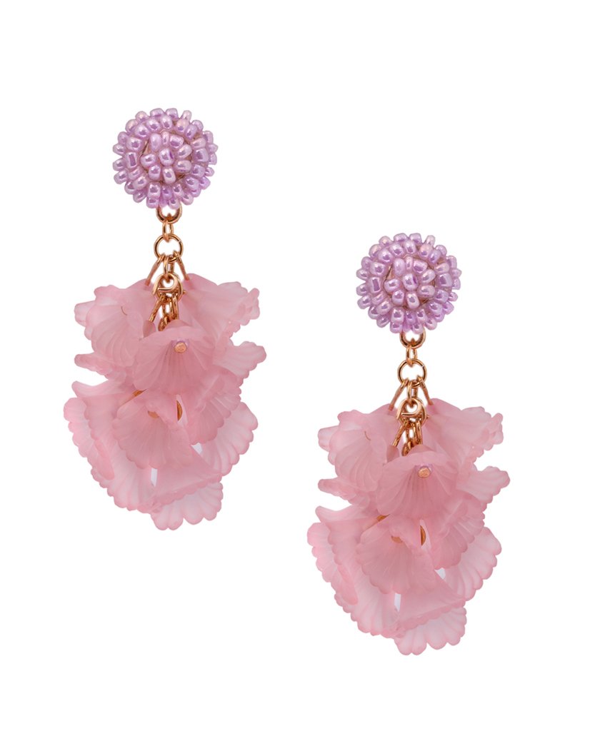 Flamingo Pink Flower Bouquet Cluster Earrings in 18K Gold
