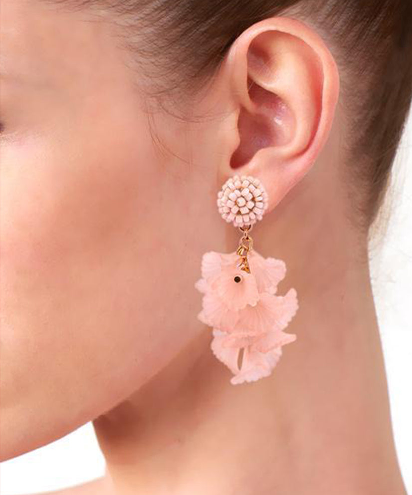 Featuring a pair of beaded lucite bouquet cluster earrings set in lead free nickel free metal with 18k gold plating.