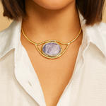 Radiate elegance with our Coiled Eye Amethyst Quartz Necklace in 18K Gold, a perfect blend of luxury and sophistication.