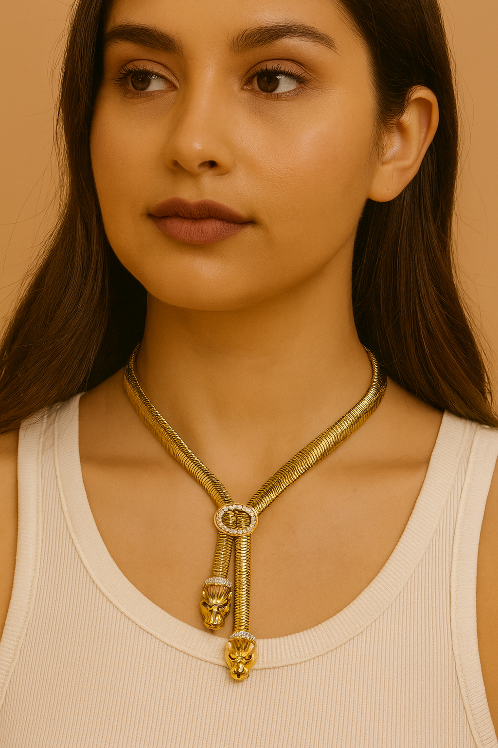 Double Headed Panthera Snakechain Dangler Necklace - Bansri Mehta Design