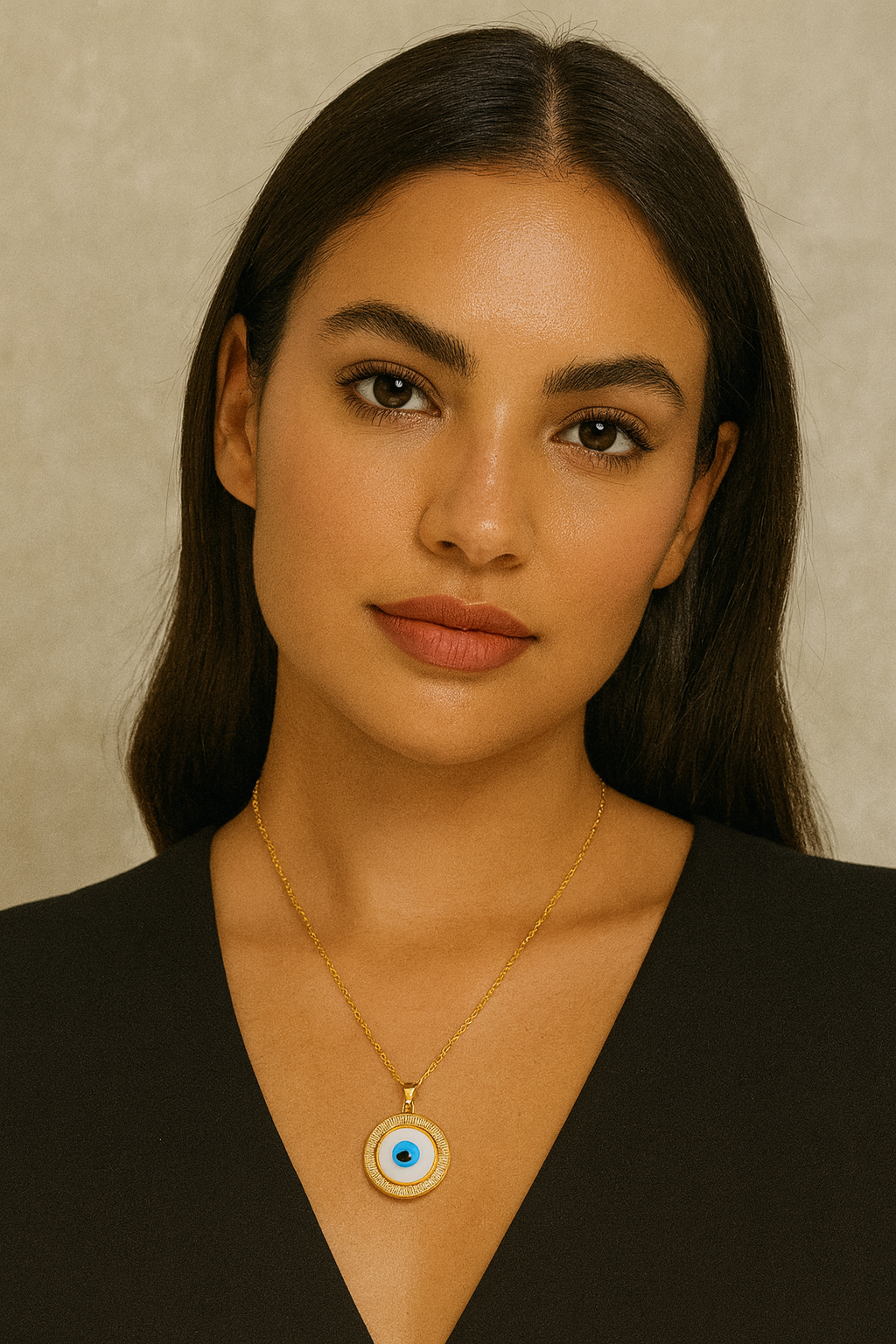 Big Evil Eye Medallion Disc Pendant Necklace – BansriDesign.In INDIA
