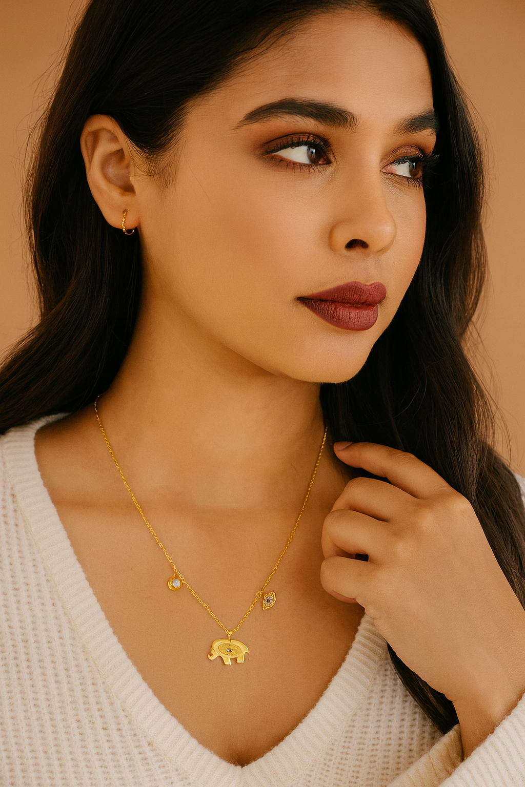 Embrace elegance with our Eye of the Elephant Necklace, blending timeless charm with a touch of symbolic allure.