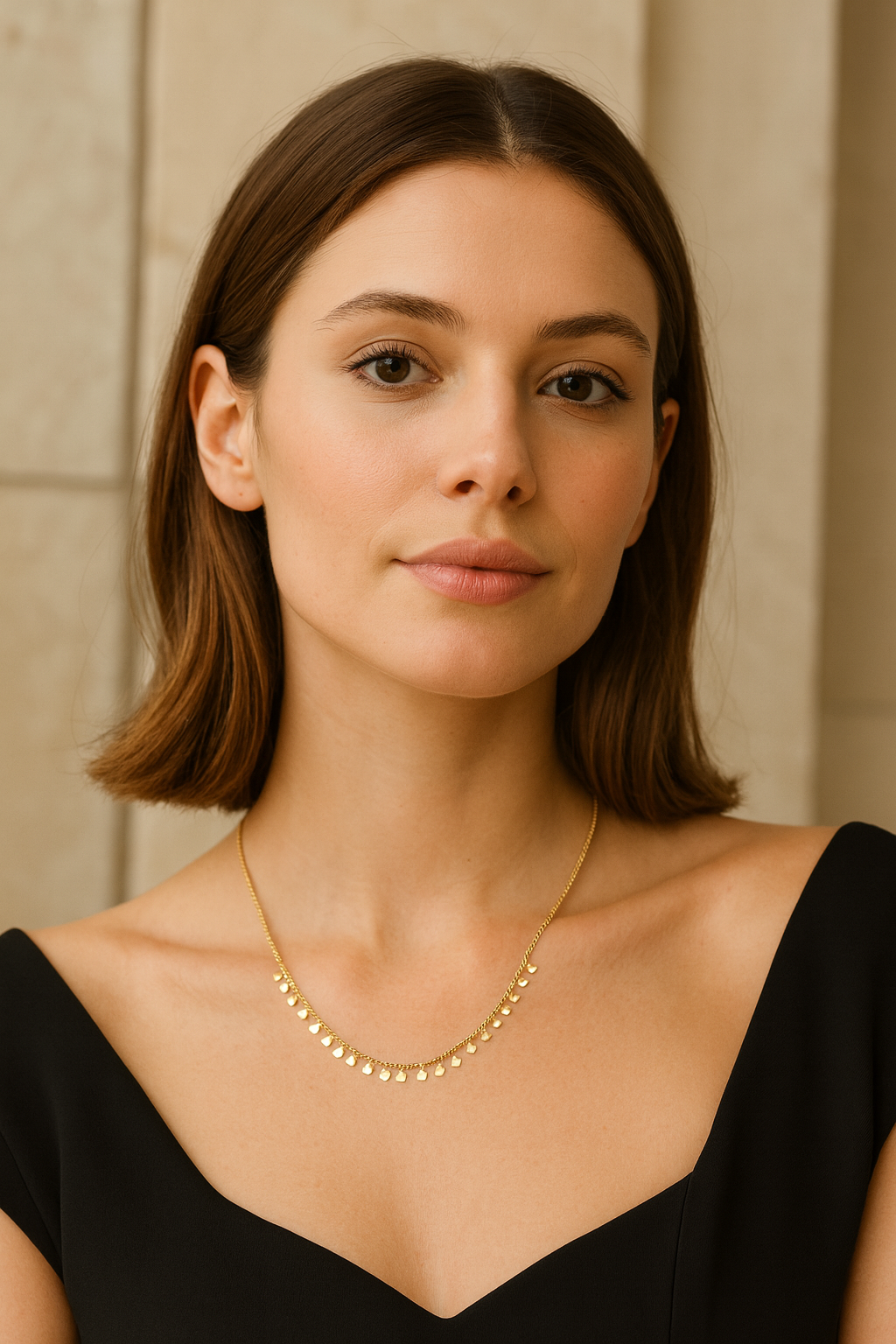 • Features a refined collar chain adorned with delicate mini heart charms for a romantic and stylish look.