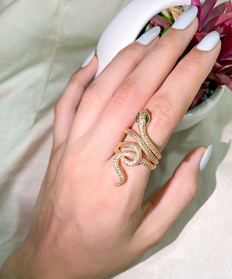 Wear our Crystal Encrusted Serpentine Ring and add that slither to your chic vibe!