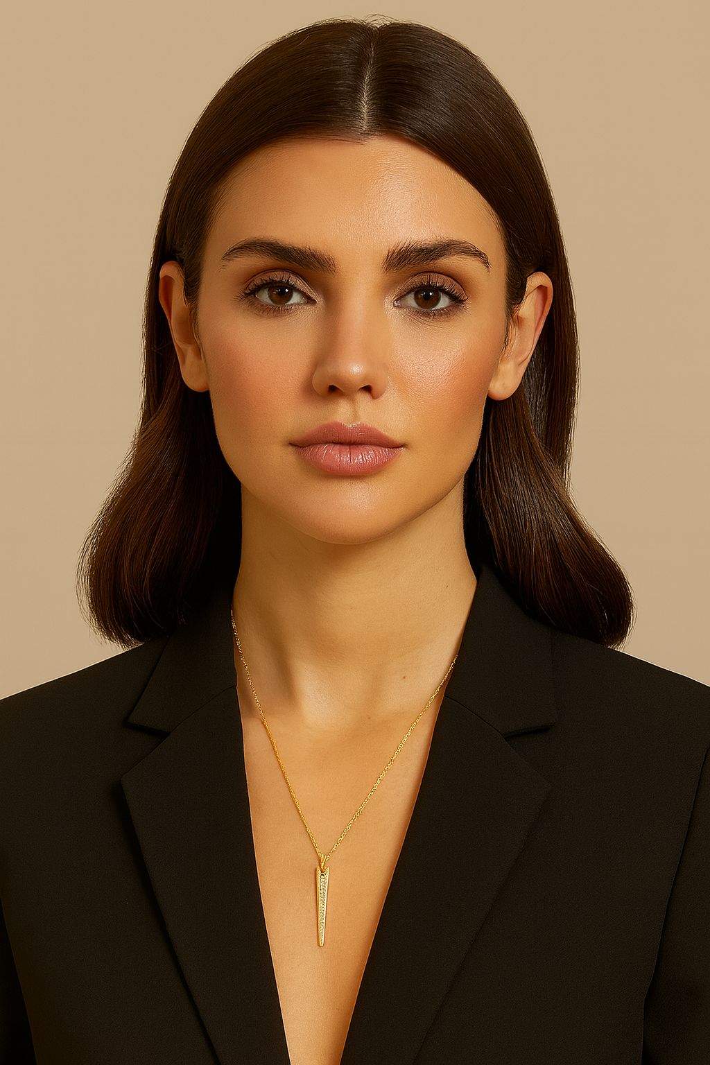 • Features a sleek V-shaped design that enhances the neckline with modern sophistication.