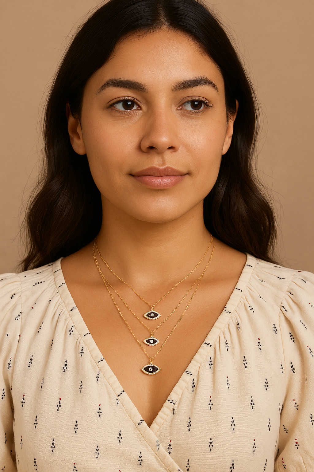Metallic Tri Layered Mini Evil Eye Necklace – BansriDesign.In INDIA